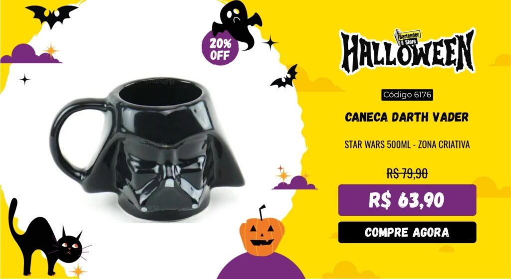 E para quem gosta de estilo com um toque geek, a Caneca Darth Vader 500ml e a Caneca Jack Skellington 450ml trazem um charme sombrio e divertido. Elas são ótimas para drinks temáticos, shots ou até para servir cafés e coquetéis quentes. Fechando a seleção, a Garrafa Caveira Mexicana Preta de Cerâmica é uma peça incrível, pintada à mão e inspirada na cultura mexicana. Ela combina perfeitamente com o clima de Halloween e pode ser usada tanto como garrafa quanto como item decorativo.