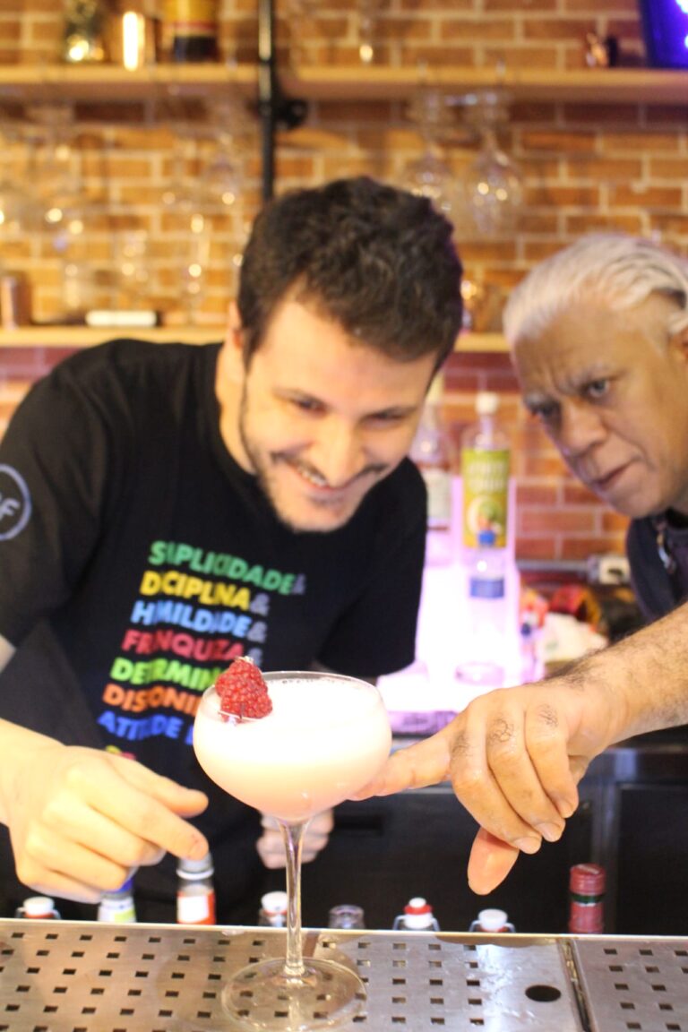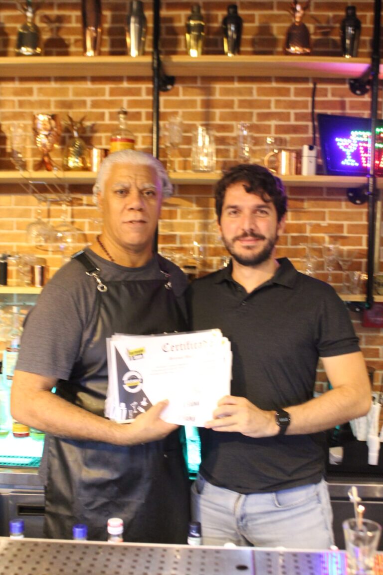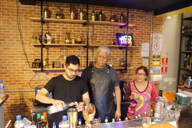 Tudo isso em um ambiente descontraído e interativo, ideal para quem quer aprender sem pressão, com espaço para tirar dúvidas e experimentar diferentes estilos de drinks.